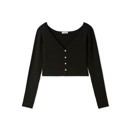 シンプルながら洗練された印象を作るシアーニットカーディガン。