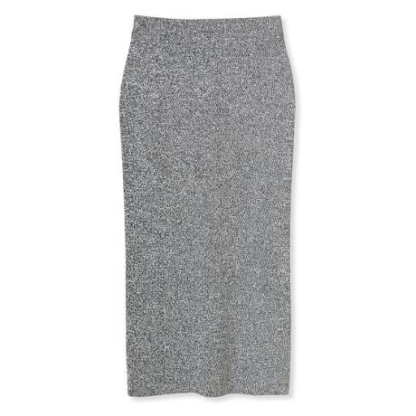 ストレートに落ちるすっきりシルエットが、トラッドな雰囲気のニットスカート。