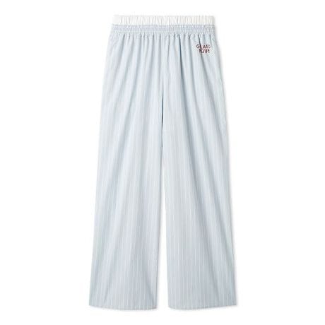 強い日差しが気になる季節に重宝する、UVカット機能を備えたストライプ柄のシリーズです。レイヤード風のWウエストデザインがトレンドライクなロングパンツ。ブラトップやタンクトップなどのショート丈トップスを合わせても、スタイリッシュに着こなしていただけます。夏の気分にぴったりなカラーリングと、配色でアクセントを効かせた左腰のロゴ刺繍もポイント。両脇に便利なポケットも付けました。色は清涼感のあるピンクとグリーン、ブルーの3色展開。同シリーズのシャツとコーディネートしてお楽しみいただけます。