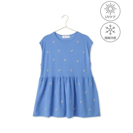 シャーベットニット 刺繍シアーペプラムニット/UVケア・接触冷感