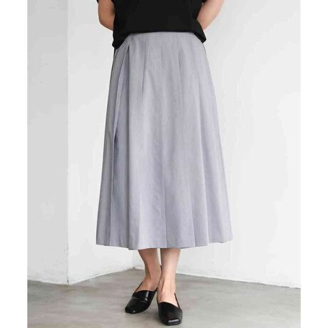 すっきりとしたプリーツが引き立つスカートは、コンパクトなトップスを合わせることでバランスよく着こなすのがおすすめ。トップスをインすることでウエスト位置が高く見え、スタイルアップ効果も期待できます。同素材のブラウスと合わせたセットアップスタイルなら、統一感のあるきちんとした印象に。足元はパンプスや華奢なサンダルできれいめにまとめるのはもちろん、フラットシューズでほどよく抜け感をプラスするのもおすすめ。デイリーから通勤まで幅広く活躍します。