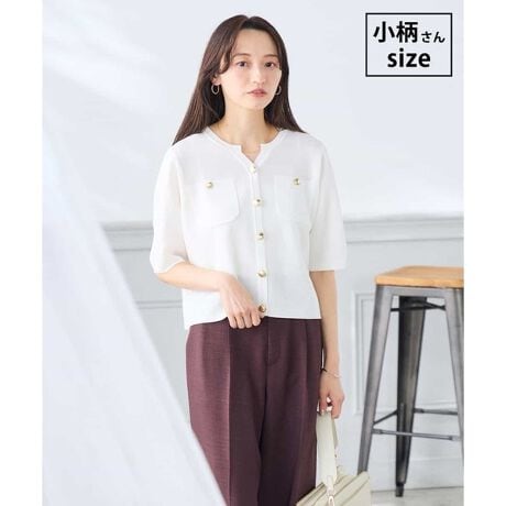 さらっとタッチの程良い風合い感が時季にぴったりなジャケット見えのカーディガン。