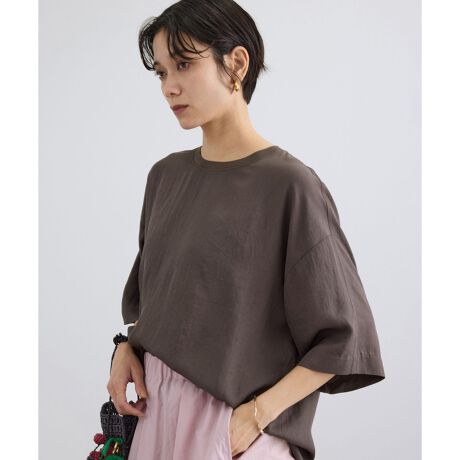 程よい光沢感のあるツイル素材を、Tシャツのように気軽に着られるデザインに落とし込んだブラウス。