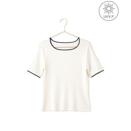 シャーベットニット リブハーフスリーブニット/UVケア