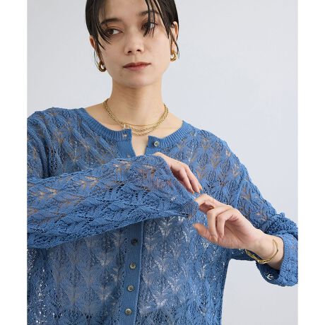 繊細なクロシェ編みが上品な存在感を演出し、一枚でもスタイリングの主役に。