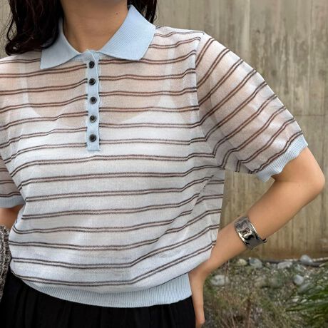 ・程よくハリ感のある、ほんのりラメ感を加えたシアー素材のポロニット