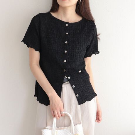 ・表面感のあるポコポコ素材で一枚でも着映えするデザイン