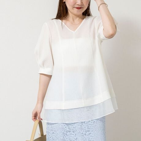 ・ふんわりとボリュームのある袖と裾のオーガンジー切替えがポイントの華やかな1枚着
