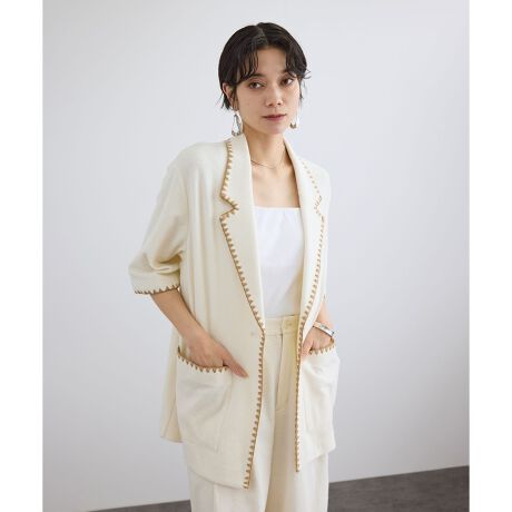 リラックス感のあるシルエットにシェル刺繍がアクセントになったハーフスリーブジャケット。
