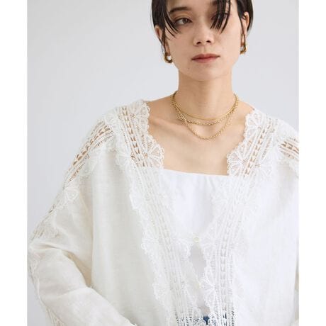 オリジナル柄の繊細な刺繍レースが印象的なブラウス。