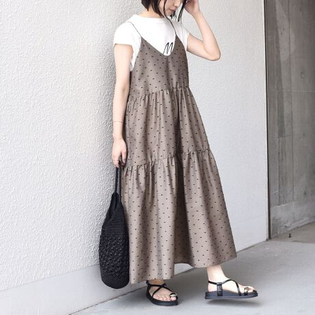 立体感のあるカットドビー素材が目を惹くキャミワンピース。