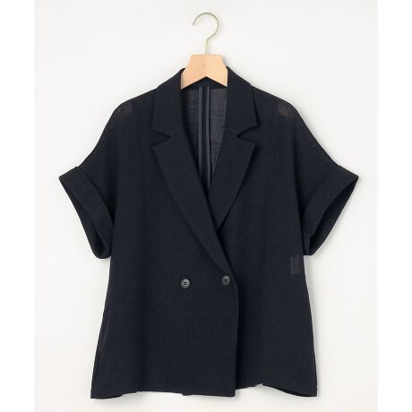■デザイン・夏らしい表情の素材を活かし、軽やかさと上品さを兼ね備えた半袖ジャケットです。・涼しげできちんと感のある素材感が大人のスタイリングに馴染みます。・程よくゆとりのあるサイズ感で、肩先やヒップ周りの気になる部分をさりげなくカバーしてくれます。・バックスタイルを美しく見せるペプラムデザインもポイントです。・夏のデイリー使いからお出かけシーンまで幅広く活躍します。コーディネートを格上げしてくれる万能アイテムです。