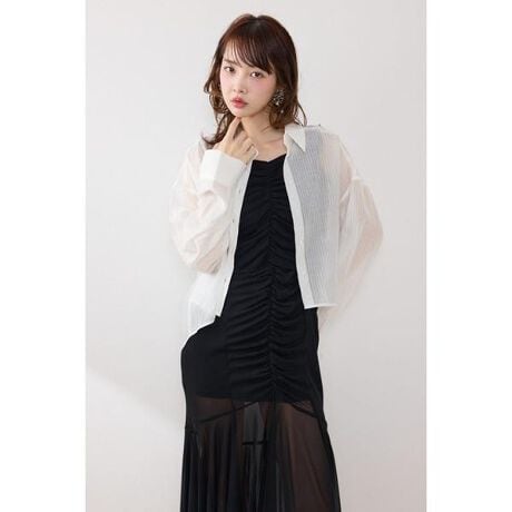 【1枚あると重宝する、着丈前後のバランスがポイントのシアーシャツ】■ポイント緩みのあるサイジングで、サラッと羽織るだけでコーディネートに抜け感が出せるシアーストライプシャツ。程よい薄さなので暑いときは腰に巻いたりアレンジし、エアコンの効いた室内などでも活躍します。ドロップショルダーと少し大きめのサイズ感で、ゆるく可愛いシルエットが作れるのも推せるポイント。ライトアウターとしてもお勧めです。■ディテールスタイリングする際、どんなボトムの丈にも合わせられるようにフロントは短くセットしました。また、後ろを長めにすることで腰に巻くことも可能!■スタイリングロングスカートからミニスカート、パンツまで幅広く活躍します。■生地透け感:あり裏 地:なし伸縮性:なし光沢感:なし厚 さ:薄手■商品のお気に入り登録お気に入りアイテムの再入荷・在庫1点などの通知を受け取ることができます。[注意事項]※画像の商品はサンプルです。実際の商品と仕様、加工が若干異なる場合があります。※画像の商品は光の照射や角度、お使いのモニター環境により、実物と色味が異なる場合がございます。※着用、お取り扱いの際は、アテンションタグをご確認ください。