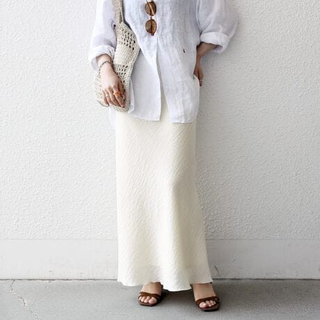 裾部分のみ裏地がないので程よくシアー感があり、ロング丈でも軽やかに着用いただけます。