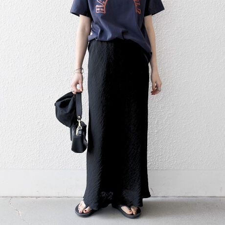 裾部分のみ裏地がないので程よくシアー感があり、ロング丈でも軽やかに着用いただけます。