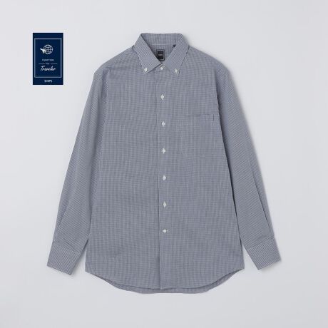 SHIPS DRESS イージーアイロン ギンガムチェック イタリアンカラー ボタンダウン シャツ