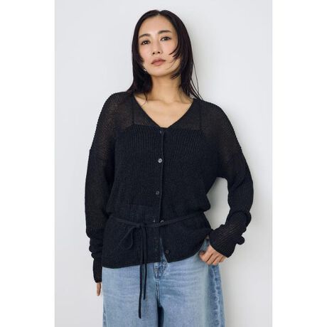 ■ドライタッチニットVネックカーディガン■ポイント立体的な畔編みが目をひく、さっと羽織るだけで抜け感のあるスタイリングが完成する1枚です。編み地の表情を活かしたデザインで、シンプルながらコーディネートの主役になるアイテムです。■ディテールあえてハリ感のあるペーパーヤーンを使用することで、編み目の輪郭が際立つ立体的な表情に仕上げました。畔編みの凹凸感が奥行きのある表情を生み、モードな雰囲気を演出。身体のラインを拾いすぎない立体的なフォルムは、この素材と編み地の組み合わせならではのシルエットです。ドライな質感で肌離れが良く、軽やかな着心地も魅力。すっきりとしたVネックとフロントボタンデザインで、ミニマルな印象に。■スタイリングキャミソールやタンクトップの上に羽織ったレイヤードスタイルがおすすめ。デニムやワイドパンツと合わせたカジュアルスタイルはもちろん、スラックスと合わせてモード感のある着こなしもおすすめ。春のスタイリングに取り入れるだけで、シーズンムードを高めてくれる主役ニットです。■生地紙とポリエステルの混紡糸で作成をしている為、カサカサとしたドライな風合いと、軽さが特徴です。透け感:編み目が粗い事による透け感あり裏 地:なし伸縮性:あり光沢感:なし[注意事項]※画像の商品はサンプルです。実際の商品と仕様、加工が若干異なる場合があります。※画像の商品は光の照射や角度、お使いのモニター環境により、実物と色味が異なる場合がございます。※着用、お取り扱いの際は、アテンションタグをご確認ください。