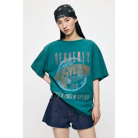 【FADED GRAPHIC LOOSE TEE/ フェイデッド グラフィック ルーズティー】■ポイント&ディテールヴィンテージ感のあるロックムード漂うグラフィックが主役のルーズT。かすれた風合いのプリントがこなれた印象を演出し、ゆったりとしたシルエットで抜け感のある着こなしに。フロントとバックのツアー風デザインが存在感をプラスします。■スタイリングシンプルなスタイリングでもポイントになる1枚。ルーズなサイズ感を活かしてワンピース風にも着こなせ、レースやサテンなど甘めのボトムとも好相性。