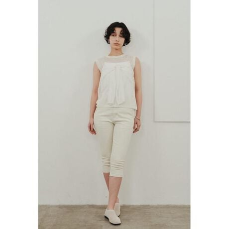 モデル身長167cm(Mサイズ着用)ストレッチデニム素材を使用したカプリパンツ。センタープレス入りのすっきりとしたデザインがポイント。程よいフィット感で動きやすく、カジュアルからきれいめまで幅広いコーディネートに対応できる一着です。ストレッチあり、透け感なし。【お手入れ方法】マシンウォッシュ可※デニムの特性上、着用や洗濯により退色し独特な色変化が生じます。・雨や汗等の湿った状態、着用や洗濯、クリーニングによって他の衣類、雑貨、家具等に色落ちします。・白・淡色との組み合わせは避けて下さい。