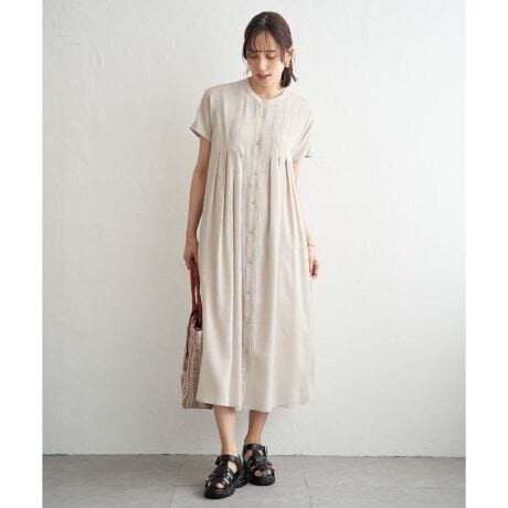 さらりと肌ばなれのいい素材を使用したきれいめ見えするワンピース。