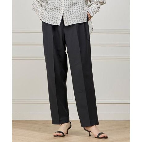 ■デザイン深めのダブルタックで描くカービーなテーパードシルエットが特徴のタックパンツ。細めの共地ベルトは長めに設定することで軽やかな揺れ感を演出します。ウエストは後ろ部分のみゴムインで楽ちん仕様なのも嬉しいポイントです。センタープレスの立体感がキレイ見えを叶えるアイテムです。■素材タテヨコに強撚糸を使用し、高密度に織り上げた2wayストレッチ素材。仕立て映えする膨らみ感と着心地良いストレッチ性が特徴です。ウォッシャブル、イージーケアに優れた素材です。・水洗い可・同素材ベルト付き・ポケットあり・裏地無し・ウエスト後ろ部分ゴム仕様同素材のスカート品番:10-61152030■サンプル撮影商品画像の商品はサンプルです。実際の商品とはサイズや色味、素材、デザイン等の仕様が若干変更になる場合がございます。■照明の関係により、実際の製品とは色味が違って見える場合があります。またパソコン・スマートフォンなどの環境により、若干製品と画像のカラーが異なる場合もございます。■サイズ表記はあくまで目安となります。