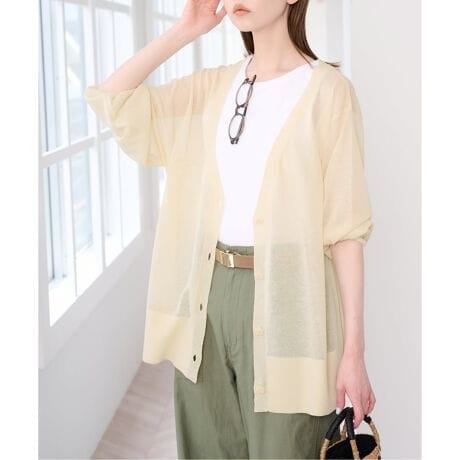 繊細なシアー編みが、やわらかく軽やかな雰囲気を演出するカーディガン。