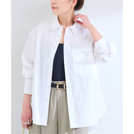 コットン高密度タイプのハリのあるポプリン素材を使用しており、ルーズさもありながら、シャツインもしやすい絶妙なサイズでロングスパンで活躍するアイテム。