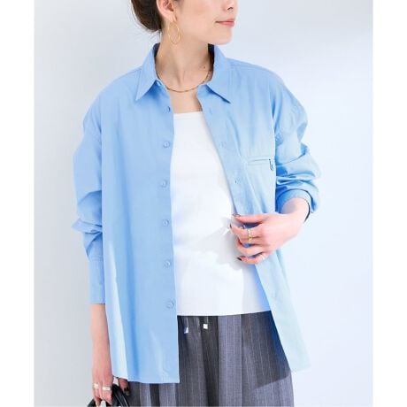 コットン高密度タイプのハリのあるポプリン素材を使用しており、ルーズさもありながら、シャツインもしやすい絶妙なサイズでロングスパンで活躍するアイテム。