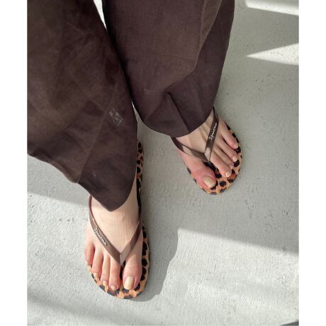 存在感のあるアニマルプリントが、シンプルな夏のコーディネートにアクセントを添えるトングサンダル。
