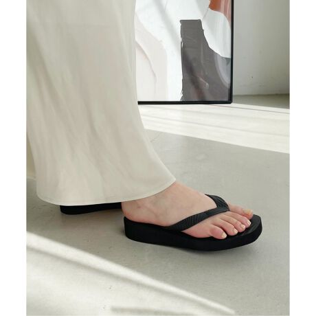 カジュアルなビーチサンダルに、厚底ソールをプラスすることで都会的な印象に。
