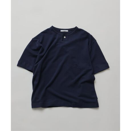 《予約》ブロック インレイ 1ボタン ヘンリーネック Tシャツ