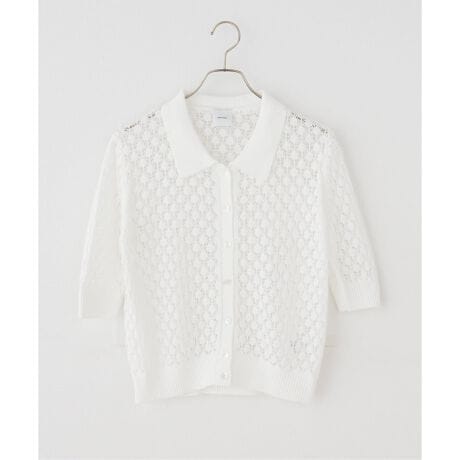 繊細な透かし柄が映える、軽やかなポロシャツデザインニット。