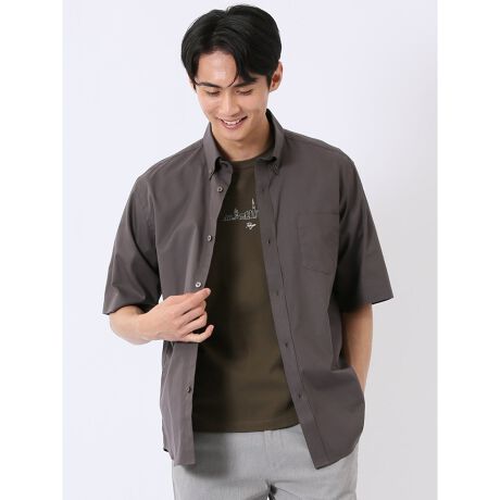 シンプルな無地で大人っぽく着こなせる、ボタンダウンの半袖シャツです。ボタンを留めて一枚で着るのはもちろん、Tシャツの上にサラッと羽織ることで、こなれた雰囲気が漂います。左胸ポケット付き。