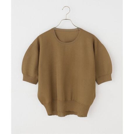 スウェットのようなカジュアルさを持ちながらも、ニットならではのきちんと感で大人っぽく着用できる仕上がりに。パフスリーブのフォルムがさりげなく女性らしさをプラスします。