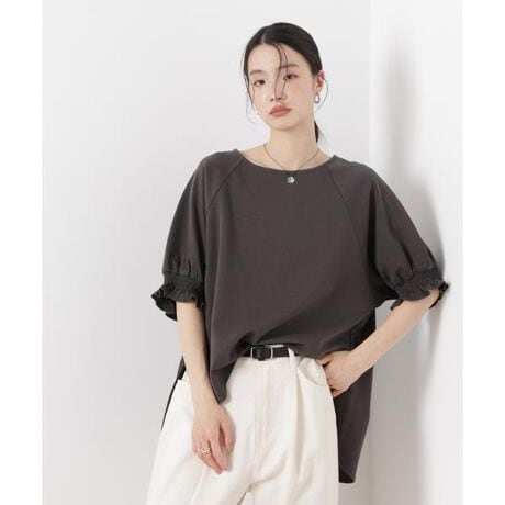 キャンディースリーブデザインが印象的な、上品見えを叶えるカットソー。カットソー素材でありながら、袖口のゴムとギャザーデザインが華やかさを演出し、まるで布帛ブラウスのようなきちんと感のある一枚に。シンプルながらも存在感があり、スタイリングの主役になるアイテムです。