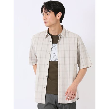 ストレッチ 綿 ブロード チェック レギュラーカラー 半袖 シャツ