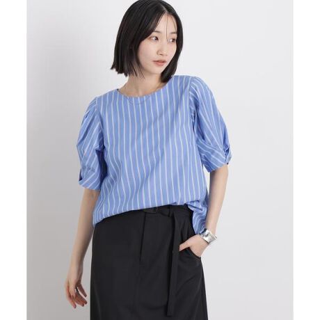シンプルながらもデザインスリーブが華やかさをプラスしてくれるブラウス。程よく立体感のある袖シルエットが、さりげなく個性を演出しコーディネートにニュアンスをプラスする一枚です。