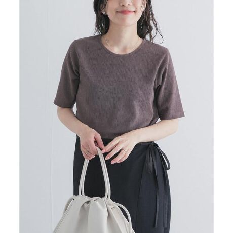 シンプルながらも凹凸のある生地が、さりげなく雰囲気のあるスタイルを演出する一枚。