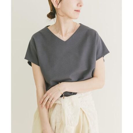 深すぎない程よい開きのVネックで、デコルテをすっきりと見せてくれるデザインです。インナーが見えにくく、安心感のある着用感もポイントです。Vネックならではの抜け感があり、リラックスした着心地ながらきちんと見えも叶う一枚です。