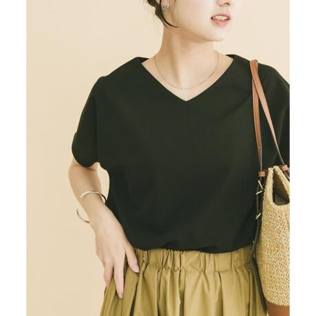 深すぎない程よい開きのVネックで、デコルテをすっきりと見せてくれるデザインです。インナーが見えにくく、安心感のある着用感もポイントです。Vネックならではの抜け感があり、リラックスした着心地ながらきちんと見えも叶う一枚です。
