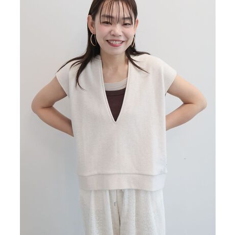 何にでも重ねられるVネックベスト。ゆるっとしたリラックスシルエットで、どんなインナーとも相性が良く着回し力抜群です。程よい肉感の裏毛素材を使用し、表面のドライなタッチがカジュアルな表情を演出します。半袖・長袖どちらのトップスとも合わせやすく汎用性の高い一着で、裾の脇に施した「RUSSELL ATHLETIC」の「R」ピスネームもさりげないポイントです。