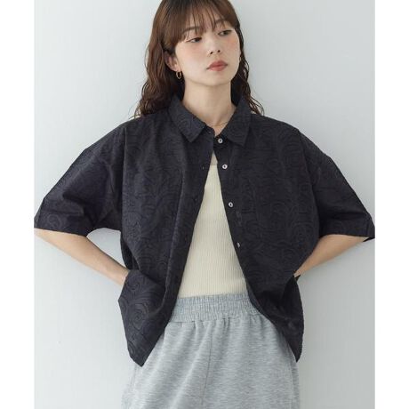表面感のあるジャガード織素材を使用したボタニカル柄シャツ
