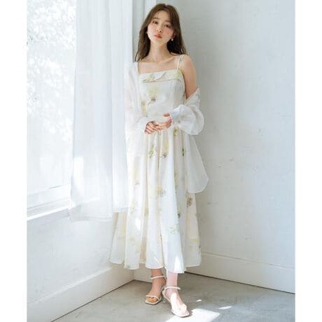 春らしい華やかさを纏うミモザプリントキャミワンピース【Design】・ミモザプリントが目を惹き、シーズンムード高まるキャミワンピース。・華奢なダブルストラップが抜け感のある軽やかな印象をプラス◎・後ろはリボンデザインとシャーリング仕様で、快適な着心地とすっきりとしたシルエットでさりげないアクセントに♪・一枚ではもちろん、インナー次第でレイヤードスタイルも楽しめるアイテムです!・肩紐はアジャスターでサイズ調整可能・後ろファスナー仕様・裏地付き【Fabric】・軽やかでさらっとした素材を使用し、快適な着心地に。・ご自宅でお手入れが出来るのも嬉しいポイント♪・イエロー、ピンク、ネイビーの3色展開となります。【Care】手洗い可能