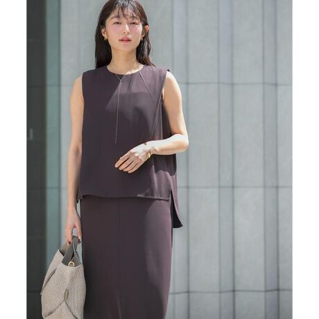 ドレープ感のあるポリエステル素材で仕立てた、レイヤードデザインのワンピース。薄手ながら適度なハリ感があり、身体のラインを拾わずすっきりと着られます。後ろにはメタルパーツをあしらいさりげない華やかさを演出。トップス部分とスカート部分が一体になったようなセットアップ風デザインで、シンプルながらも立体感のあるシルエットに仕上げました。アクセサリーやバッグ次第で印象を自在に変えられ、日常から特別なシーンまで幅広く活躍する一着です。