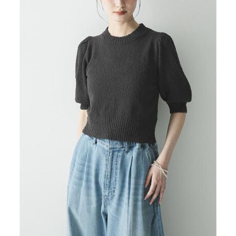 立体的で華やかなボリューム袖が、女性らしさを引き立てるショート丈ニット。