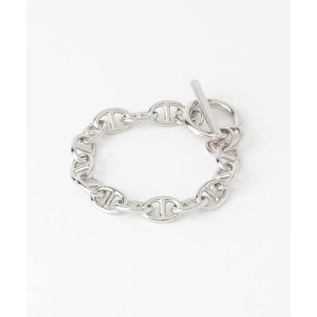 程よいボリューム感が目を惹くチェーンデザインブレスレット。無駄を削ぎ落としたミニマルなルックスながら、存在感のあるパーツ使いがスタイリングにさりげないアクセントを加えます。シンプルながらも洗練された雰囲気を纏い、手元から大人の品格を演出してくれるアイテムです。