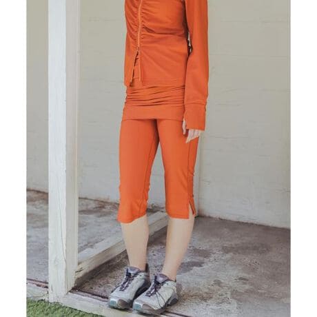 膝下丈のレギンス部分は、脚のラインをすっきりと見せ、水辺での紫外線対策や擦れ防止にも役立ちます。体に心地よくフィットする素材感で、水中での動きやすさも抜群。