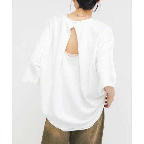 ゆるっとしたサイジングが嬉しい半袖スウェット。バックオープンデザインになっており、自然と女性らしい抜け感が叶います。ポケットも付いており機能性抜群なところもポイント。トレンドのサブリナパンツを合わせたヘルシーな着こなしがおすすめです。