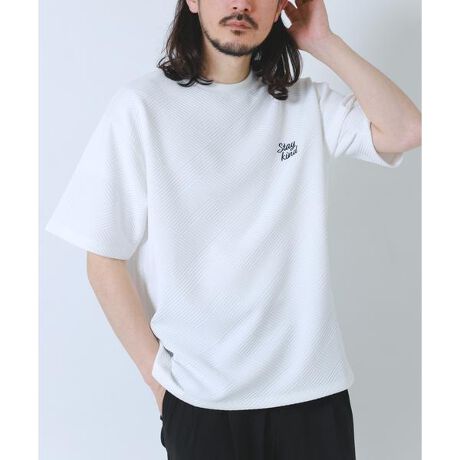 立体感のある刺繍ジャカードが印象的な、上品な表情を纏った半袖トップス。シンプルなシルエットの中に繊細な柄感を落とし込むことで、一枚着でも着映えする存在感のあるデザインに仕上げています。派手すぎない上品なアクセントが、大人の夏スタイルに程よい華やかさをプラスします。