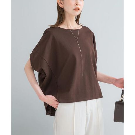 さらりとした肌触りとクリアな表面感が魅力のドルマンプルオーバー。程よく厚みのある生地で、淡いカラーでも透けにくく安心感のある着心地に仕上げました。UVカット機能付きで、日差しが気になる季節にも頼れる一枚です。ゆったりとしたドルマンシルエットが自然に体のラインを包み込み、気負わず着られるのに品のある印象に。肩まわりにはさりげないカッティングを施し、シンプルながら立体感のあるデザインに仕上げています。後ろは浅めのVネックで、さりげない抜け感をプラス。パンツにもスカートにも合わせやすく、きれいめにもカジュアルにも対応できる着回し力の高さも魅力です。